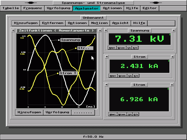 Falls Meßergebnisse von Strömen in drei Phasen vorhanden sind, kann man eine Dreiphasen-Ersatzschaltung des zu untersuchenden Energieversorgungsnetzes erstellen und die unsymmetrischen Zustände des Netzes sowohl bei der Basisfrequenz als auch bei den Frequenzen der Oberschwingungen untersuchen.
