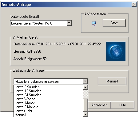 Falls der Anwender jedoch die Messdaten in Echtzeit beobachten und analysieren will, muss er lediglich im oben dargestellten Fenster die Zeile „Aktuelle Ergebnisse in Echtzeit“ auswählen.